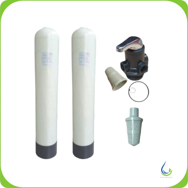 Giống với bộ 2 cột lọc composite 1054 lọc nước nhiễm phèn thì bộ lọc này dùng xử lý nước giếng khoan sử dụng 5 vật liệu lọc chuyên dụng. Bao gồm các vật liệu: than hoạt tính, sỏi lọc nước, cát thạch anh, hạt brim, hạt trao đổi ion,… Những vật liệu này giúp hấp thụ mùi khó chịu, khử kim loại nặng có trong nước giếng khoan; cùng với đó là khả năng loại bỏ những tạp chất có kích thước lớn hơn 5micromet rất hiệu quả.