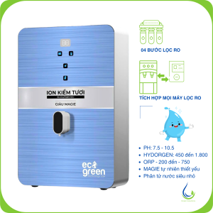 Máy chuyển đổi nước ion kiềm điện phân Magie cực tan Eco Green tạo ra nguồn nước ion kiềm giàu hydrogen, đáp ứng tiêu chuẩn khắt khe về chất lượng nước uống của Bộ Y tế. Đặc biệt, ECO.ION005 (R2) là loại máy chuyên dụng cho nguồn nước đầu vào có pH thấp (pH <6,5).