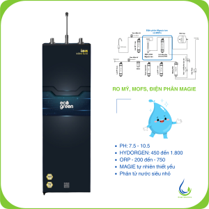 Máy lọc nước ion kiềm nóng nguội điện phân Magie cực tan Eco Green tạo ra nguồn nước ion kiềm giàu hydrogen, đáp ứng tiêu chuẩn khắt khe về chất lượng nước uống của Bộ Y tế. Đặc biệt, ECO.ION015 (R2) là loại máy chuyên dụng cho nguồn nước đầu vào có pH thấp (pH <6,5).